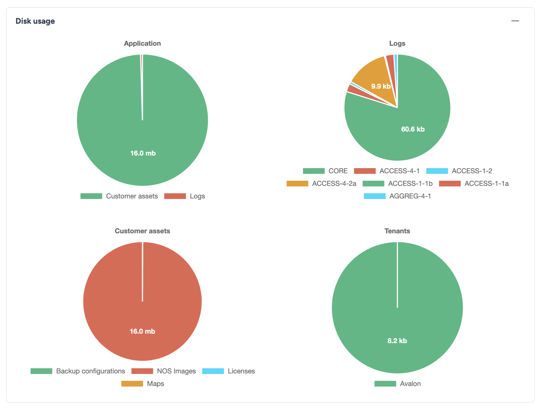 - Tenants: Displays specific storage usage per tenant for configurations backups.