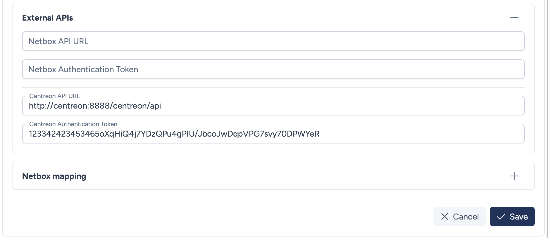 - Centreon API URL: The full URL to access your Centreon instance API.