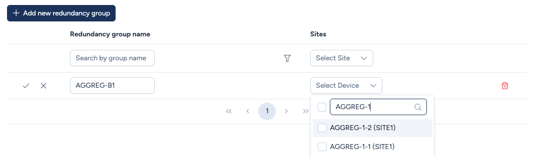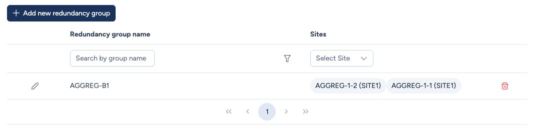 You can define new groups by clicking + Add new redundancy group or modify existing ones using the edit icon.