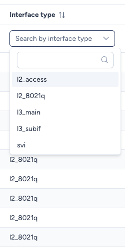 Avalon categorizes interfaces based on their logical function (L2 switching vs. L3 routing). You can filter the list using these specific types.