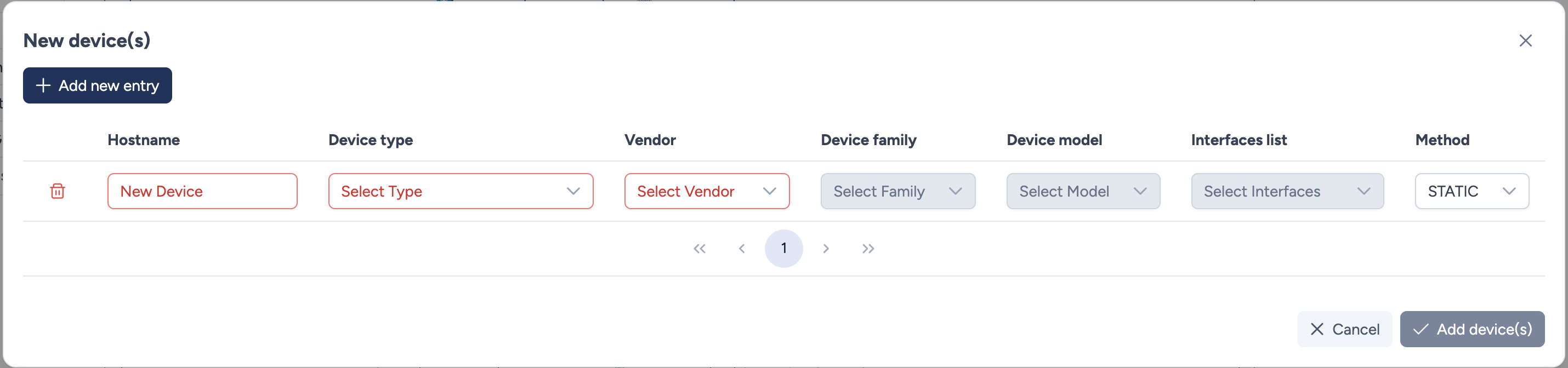 This menu serves two specific purposes: pre-provisioning devices for Zero Touch Provisioning (ZTP) or adding "Static" devices to the map that cannot be managed via the standard AutoDiscovery process.