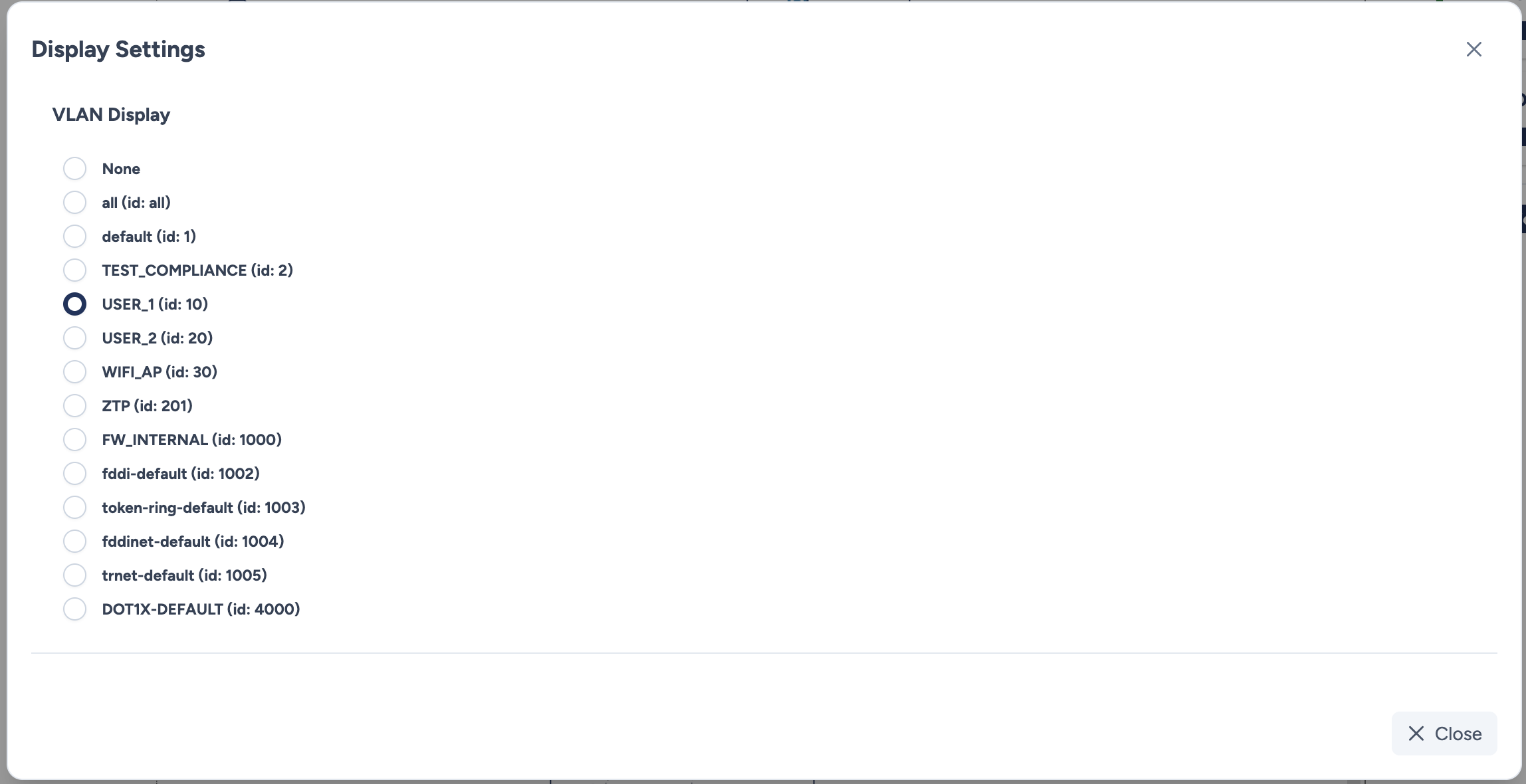 Once a VLAN is selected, the topology map updates in real-time to reflect the configuration status.