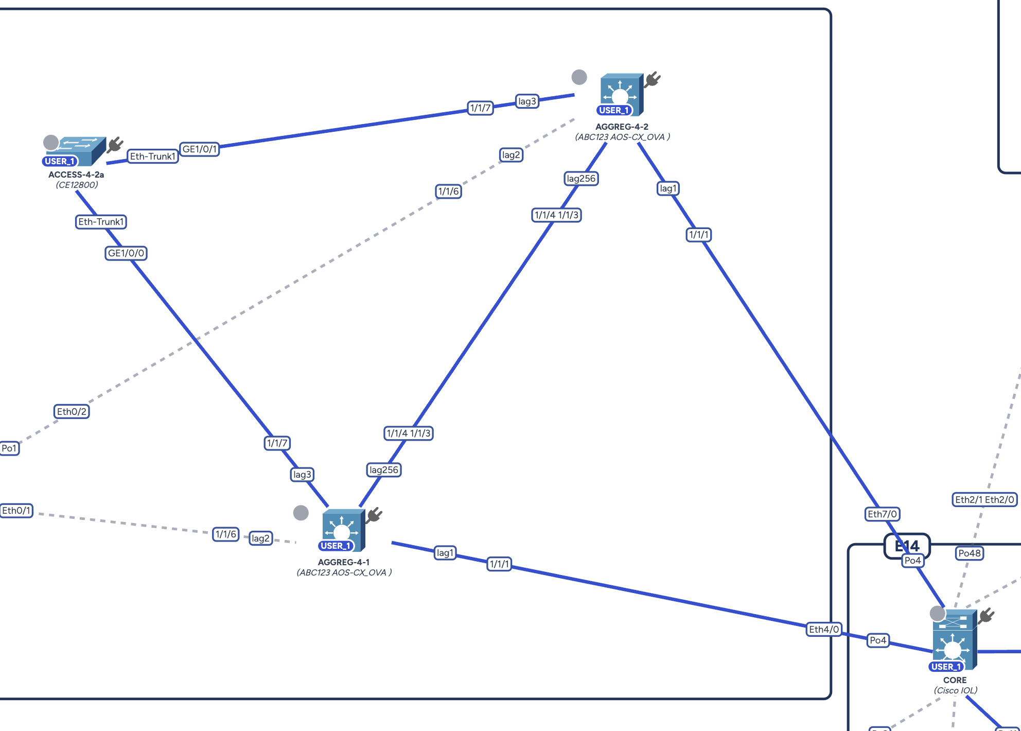 • Gray/Dotted Link: The link remains in its default state if the VLAN is not present or if the configuration is incomplete/asymmetric.