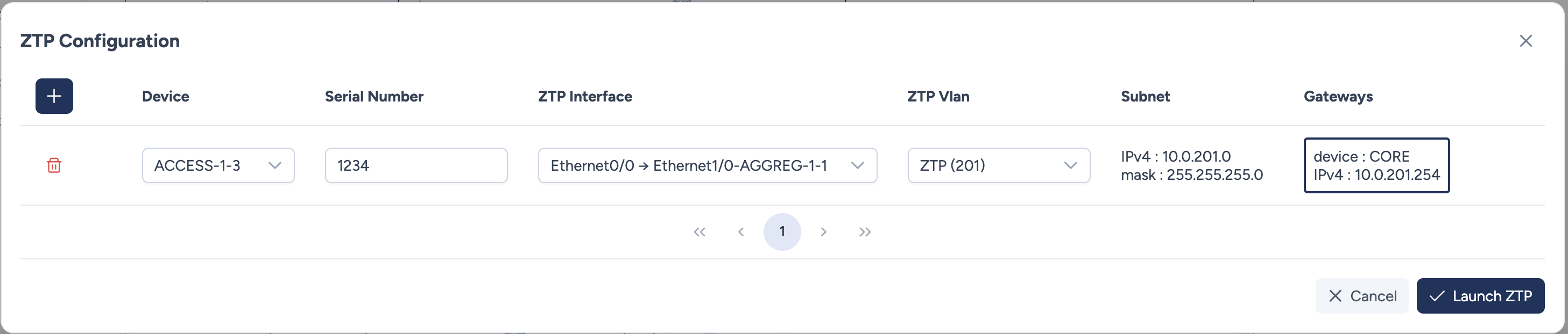 This module orchestrates the Zero Touch Provisioning (ZTP) workflow. It allows you to prepare the network environment so that new devices can automatically retrieve an IP address and a minimal configuration upon their first boot.