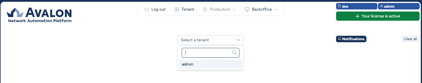 Once you have entered the admin credentials, you will need to select a tenant, as explained, you will only be able to select the admin tenant: