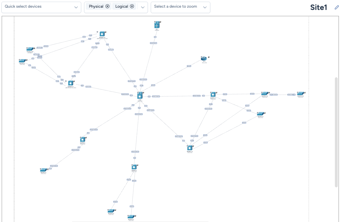 - Finally, the process register all data into the DB, calculates devices position on the map while puting the core(s) device(s) at the center and drawing star like topologies around the core(s).