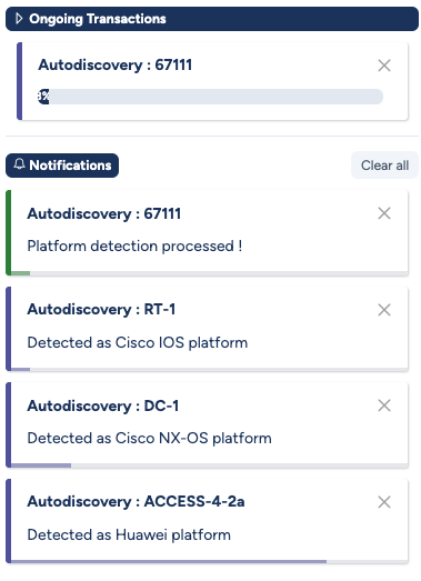 - Technology discovery: the next step is to gather which technologies are deployed on the devices, this will mainly include standard technologies as VLANs, IP addresses, VRF, aggregates but also stacking and High Availability technologies.