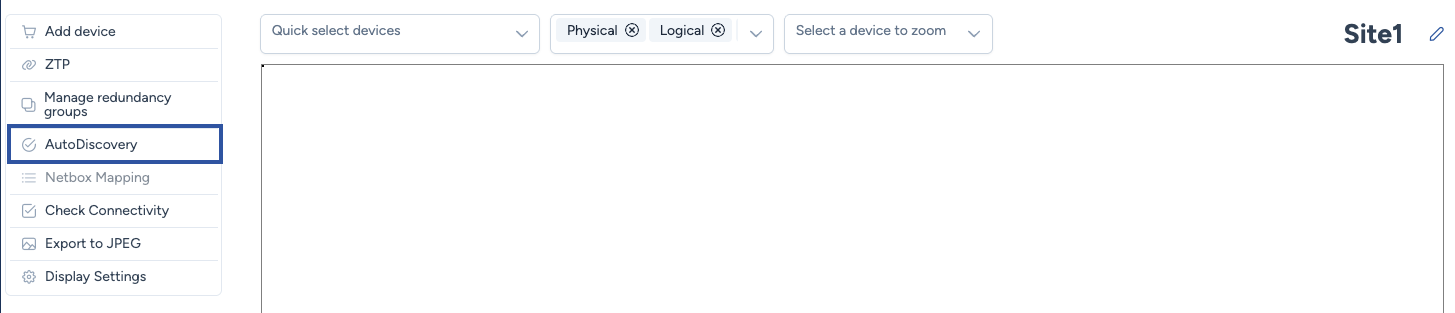 As you can see the Launch AutoDiscovery button is not yet enabled because no device has been defined as the core of the site.